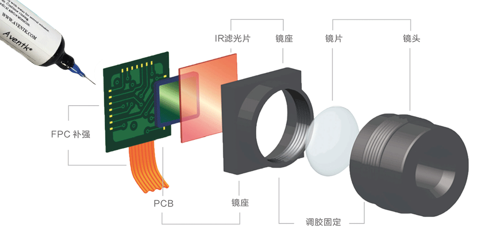 AVENTK 1019系列對有鍍層的PMMA和PC材料體現出良好的粘接力。有非常好的密封性可以保證固化更完全。尤其對于攝像頭粘接具有絕佳效果。AVENTK 配合LED UV 固化設備效果最佳。